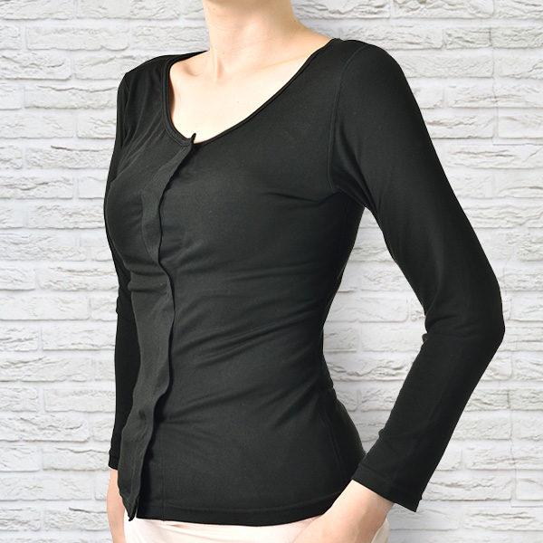 気になる冷えから身体を守る!カップ付き前開き長袖インナー