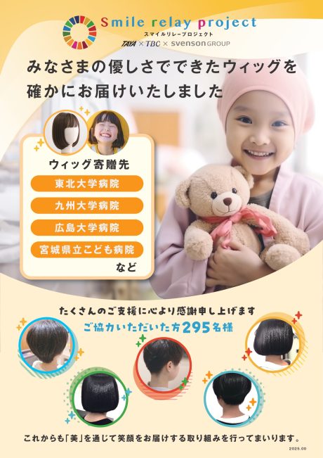 ▶ 小児がん患者の子どもたちへのウィッグ支援「スマイルリレープロジェクト」完了報告はこちら