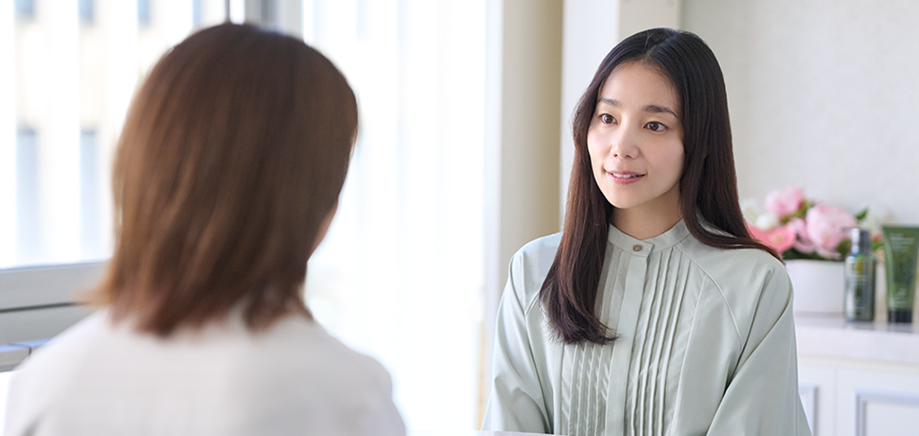 まずはサロンの専門スタッフへ、ウィッグに関するご要望やお悩みをお伝えください。脱毛から発毛、そして髪が伸びてくるまでの間に必要なことを、丁寧にアドバイスいたします。
